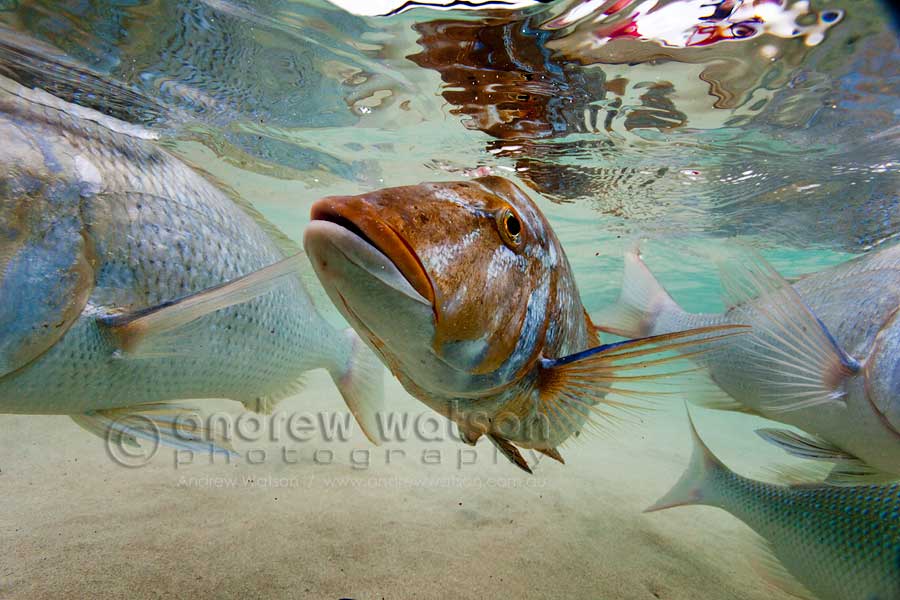 - Sweetlip Emperors waiting to be fed at Coral Bay