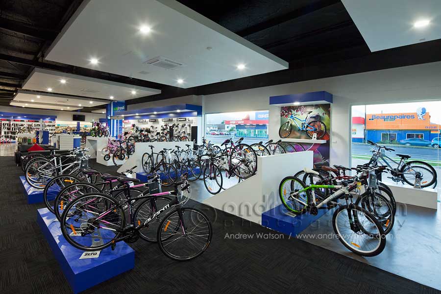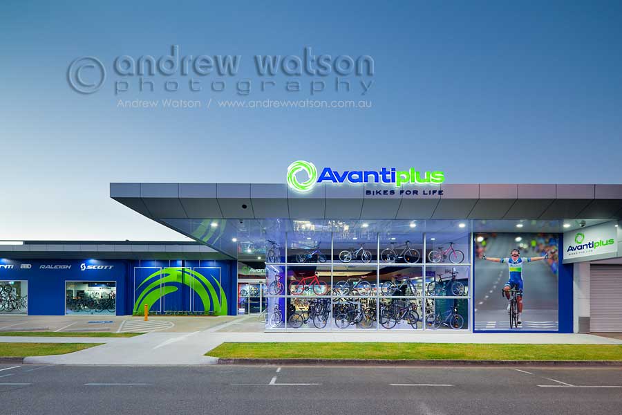 For the new Avantiplus store, the client was looking for a suite of images that captured beautifully the building and the huge range of bikes, especially the main showroom window which is an eye-catching display. Because of the big glass windows and many reflections, the best time to shoot it was around twilight, when the ambient and interior light levels were balanced. The open interior also allows unfettered viewing of the store’s many rows of bikes and accessories.
