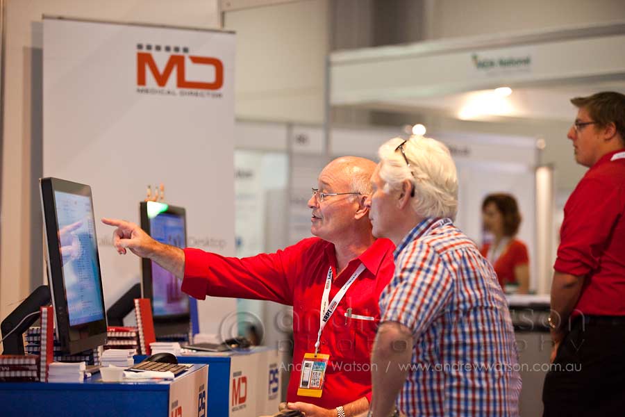- Conference delegates at trade exhibit