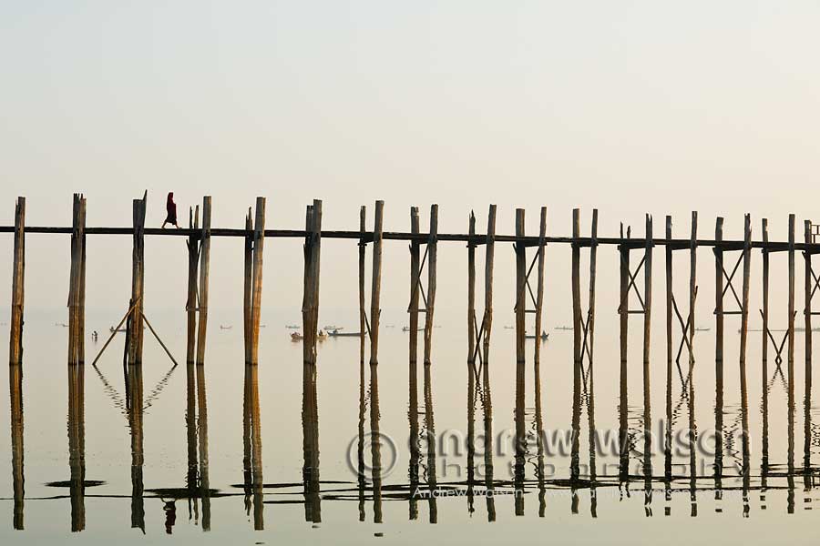 Myanmar (Burma) 02/02/2014 by andrewwatson The teak pylons of U Bein’s Bridge (world’s longest teak footbridge) reflected in the waters of Taungthaman Lake, Amarapura Share this:ShareGoogleFacebookLinkedInEmailTwitterPrint