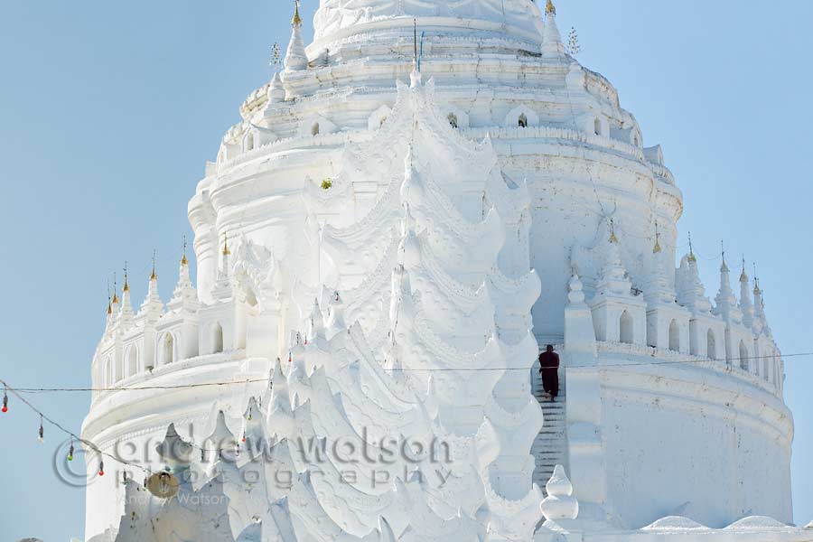Myanmar (Burma) 02/02/2014 by andrewwatson Monk climbing the steps of the whitewashed Hsinbyume Paya at Mingun, Mandalay Share this:ShareGoogleFacebookLinkedInEmailTwitterPrint