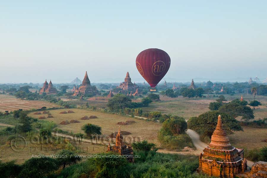 Myanmar (Burma) 02/02/2014 by andrewwatson Hot air balloon floating over the temples of Bagan at dawn Share this:ShareGoogleFacebookLinkedInEmailTwitterPrint