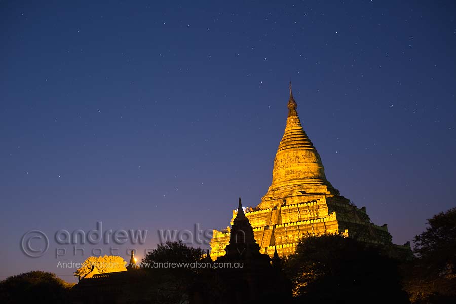 Myanmar (Burma) 02/02/2014 by andrewwatson Shwesandaw Paya illuminated at twilight with star filled sky beyond, Bagan Share this:ShareGoogleFacebookLinkedInEmailTwitterPrint