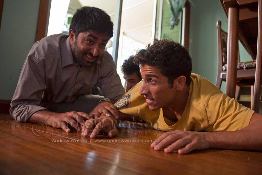 The Straits 15/03/2014 by andrewwatson Gary, Joseph and Eddie (Played by Firass Dirani, Chum Ehelepola & Kramer Cain) shelter when the house is sprayed by gunfire Share this:ShareGoogleFacebookLinkedInEmailTwitterPrint