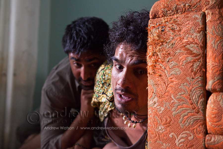 The Straits 15/03/2014 by andrewwatson Eddie and Joseph (Kramer Cain and Chum Ehelepola) hide behind a couch from a rampaging raskol, bent on revenge Share this:ShareGoogleFacebookLinkedInEmailTwitterPrint