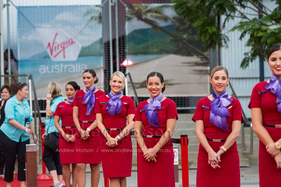 - Virgin Australia crew greeting arriving delegates