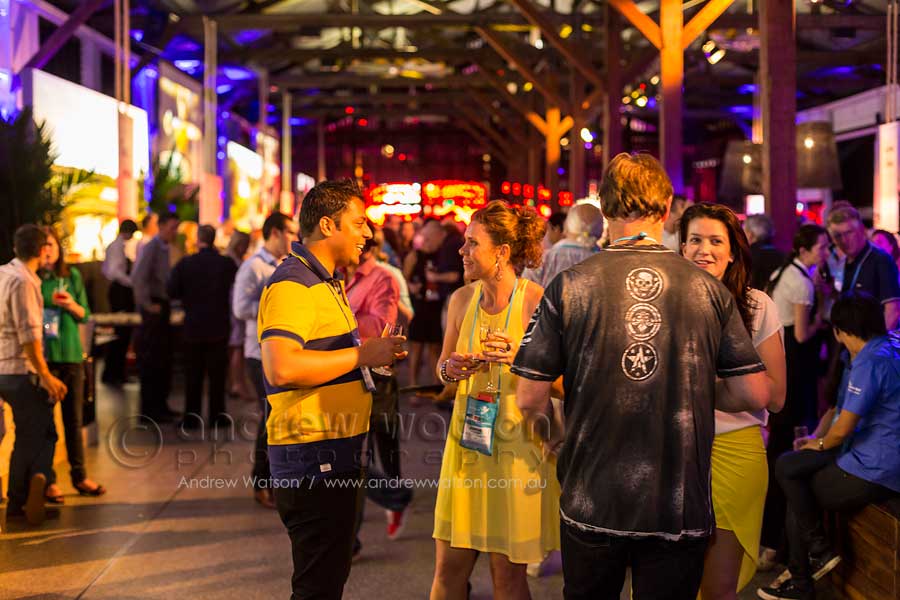 - Delegates eating and drinking in Wharf Shed #2 – transformed into Restaurant Australia for the ATE14 Farewell Function