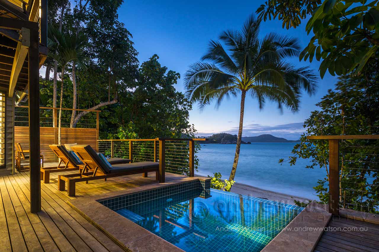 Bedarra Island Resort 24/07/2014 by andrewwatson Villa plunge pool looking out to Bedarra Bay at twilight Share this:ShareGoogleFacebookLinkedInEmailTwitterPrint