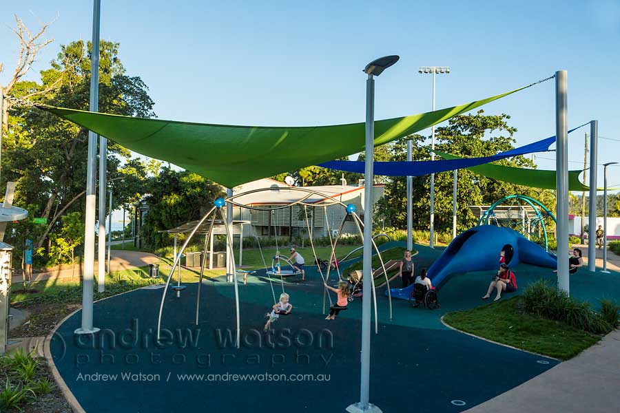 The clients commissioned me to capture all the elements of the revitalised foreshore and its use. Being around 5 kilometres long, there was certainly plenty to photograph, with the redeveloped foreshore incorporating various areas of interest including the Jetty Plaza, Wetland Walk, Heritage Precinct and Coral Sea Memorial. By incorporating elements of local art, culture and history, the designers and townspeople have created something destined to be an enduring centrepiece for the community and region.