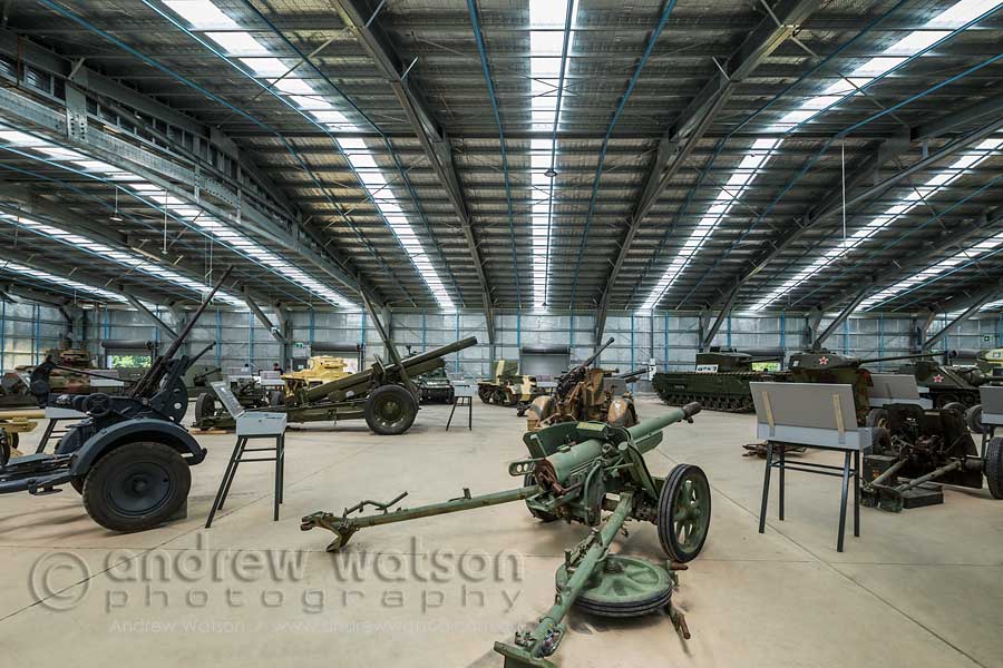 - Artillery on display within the expansive interior