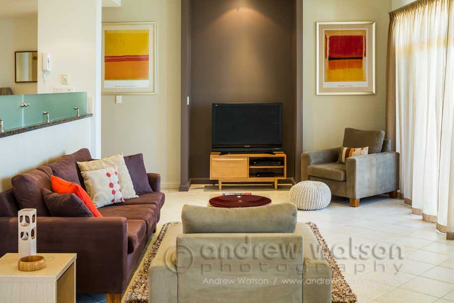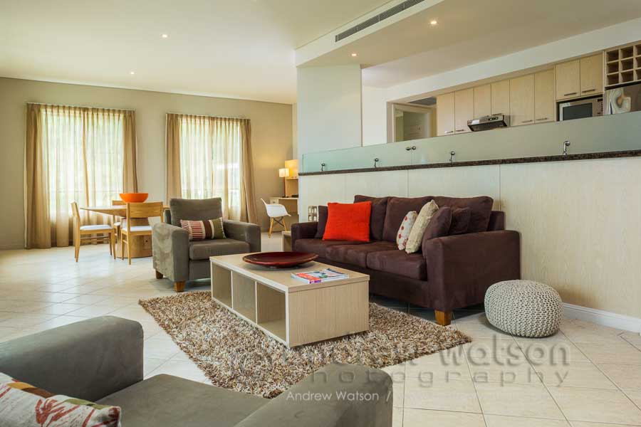 Anyway, over the course of a day we were able to shoot the interiors for two apartments and pool area during daylight, as well as some additional shots of the pool area and foyer/reception at twilight. Although a full day may seem like a lot for two apartments, to balance the interior and exterior lighting for large apartment, with a number of indoor & outdoors areas, requires a good degree of skill with professional, studio lighting. Rooms are generally shot from a number of different angles also, to give the client a good selection of images.