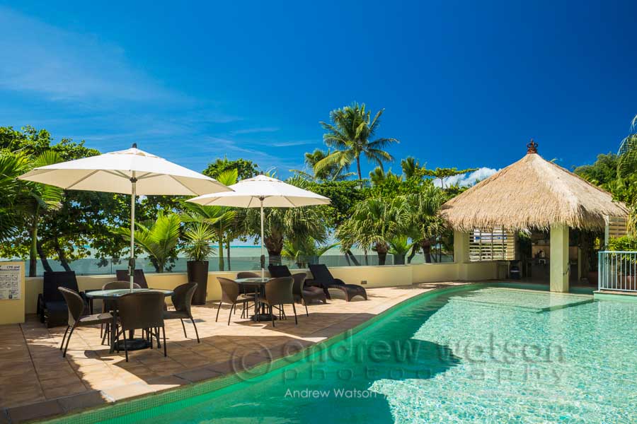 Trinity Beach is a quiet coastal village about 15 minutes drive north of Cairns city, and is where Sea Change Beachfront Apartments is located. We were there early this month for their accommodation photography, as a refresh for their marketing materials and website. As is always required with these types of shoots, one eye was kept on the weather in the lead up to the shoot date, to ensure the property was shot in the best light. Generally we’re pretty flexible about things, and are able to reschedule a shoot, should the weather look less than ideal.