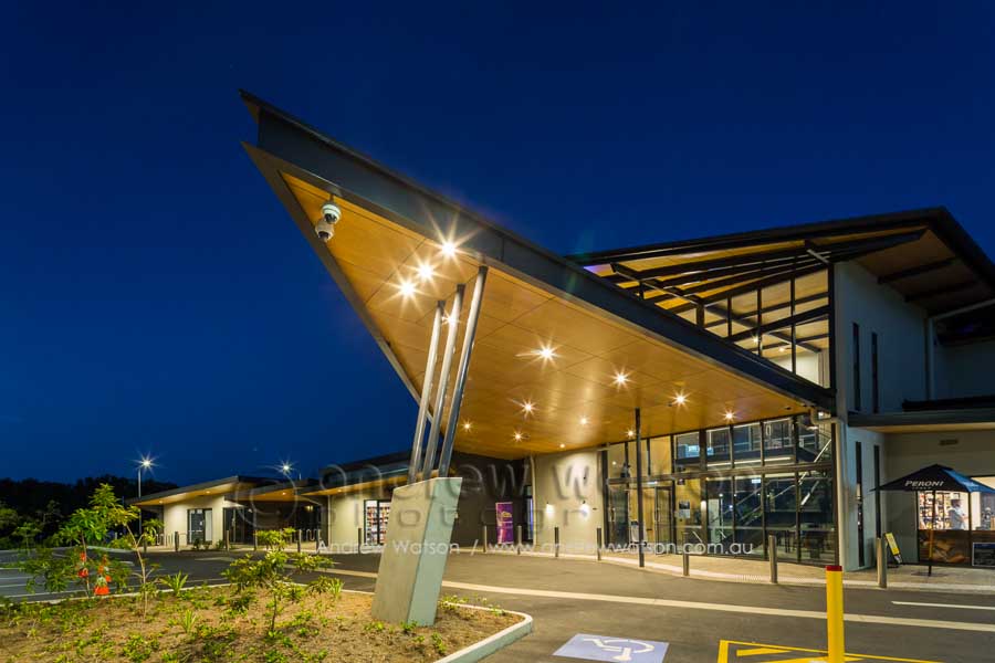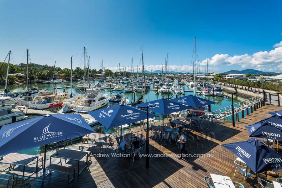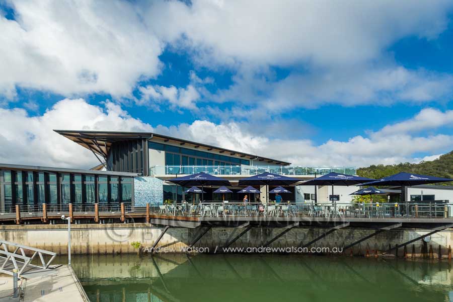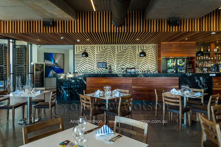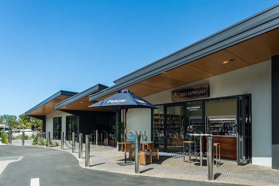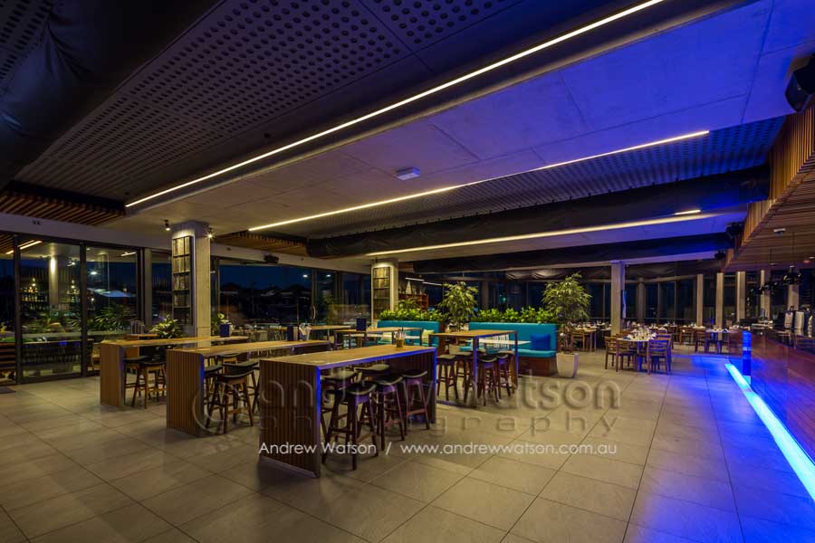 The Bluewater Bar & Grill is at the centre of a new marina-based residential precinct in the north Cairns suburb of Trinity Park. The building incorporates a restaurant with a spacious deck overlooking the marina, as well as a bottle shop, deli and admin area. Providing the photography for the architects, Coburn Architecture, we looked to highlight the strong angular forms of the building, along with its clever use of natural materials to create space, natural lighting and to showcase its waterfront views.
