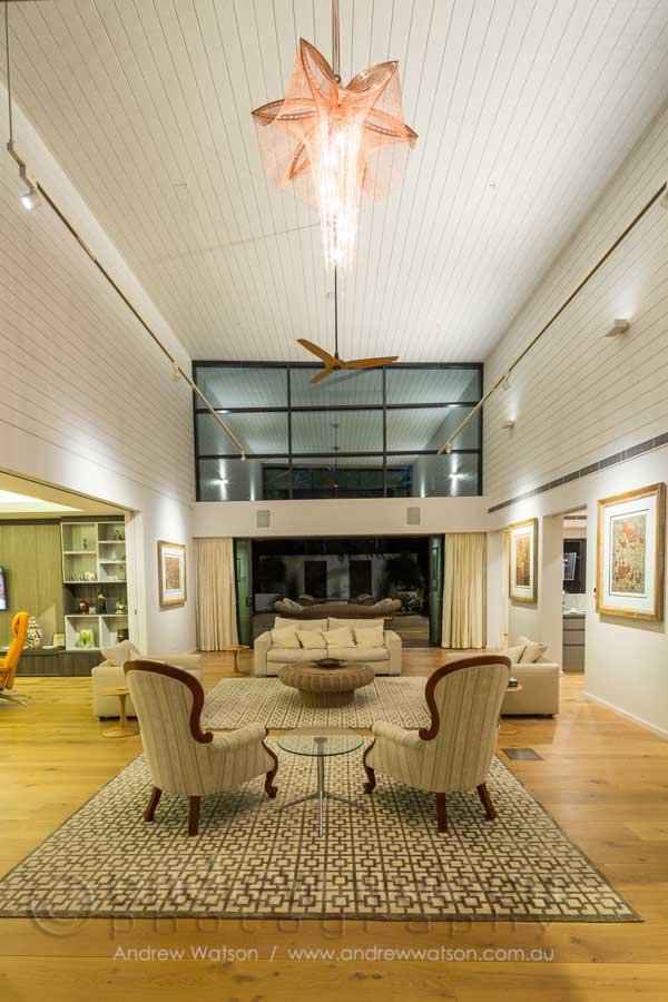 I was recently commissioned by Total Project Group Architects to photograph another of their amazing residential projects – a home that had it’s origins as a community hall, but which has undergone a major transformation. At it’s heart sits a stunning elevated ceiling that connects the front and rear porches to the living area. To capture the essence of the house, the shoot took place over the best part of a day, with the photography at twilight enabling the drama of that ceiling to be fully highlighted.