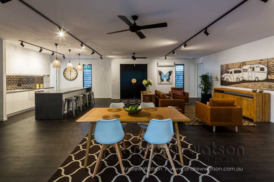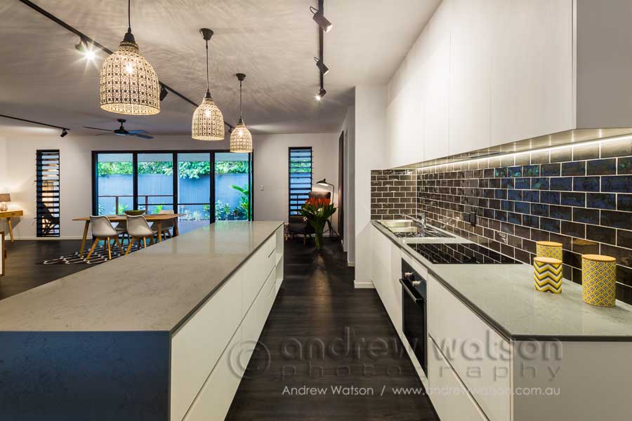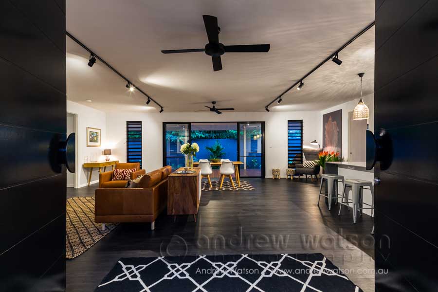 MiHaven recently tasked me to photograph another version of their Inner City Haven style residence. This style of home really showcases how a small, affordable, city block can used to create a spacious, comfortable living space, ideal for the tropics. Again, we photographed at twilight to show off its design and layout to best effect.