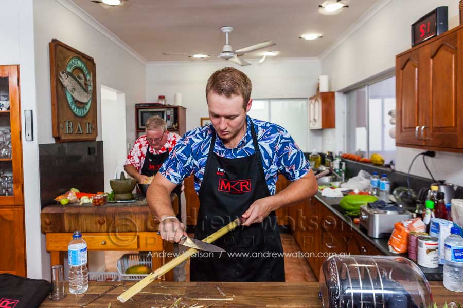 My Kitchen Rules, Seven Network’s popular cooking game show was back filming in Cairns for series seven. This time it was for an Instant Restaraunt round at Mike & Tarq’s home – a father and son team living on Cairns’ northern beaches. I was there to shoot the tv publicity stills – capturing the drama in the kitchen, as well as at the “Island Thyme” dining table, with guest judges Colin Fassnidge & Rachel Khoo.