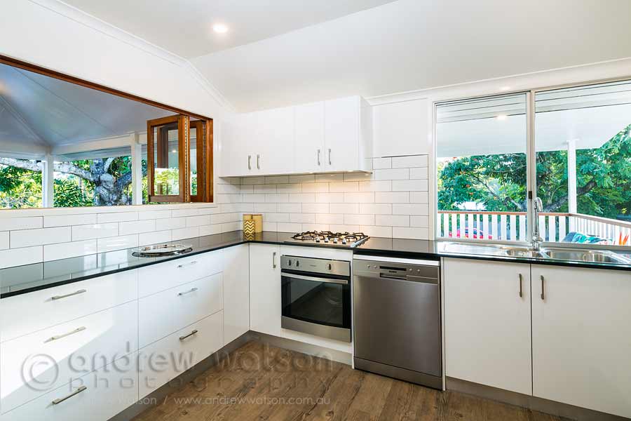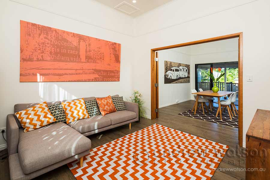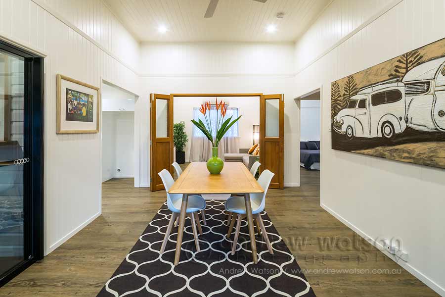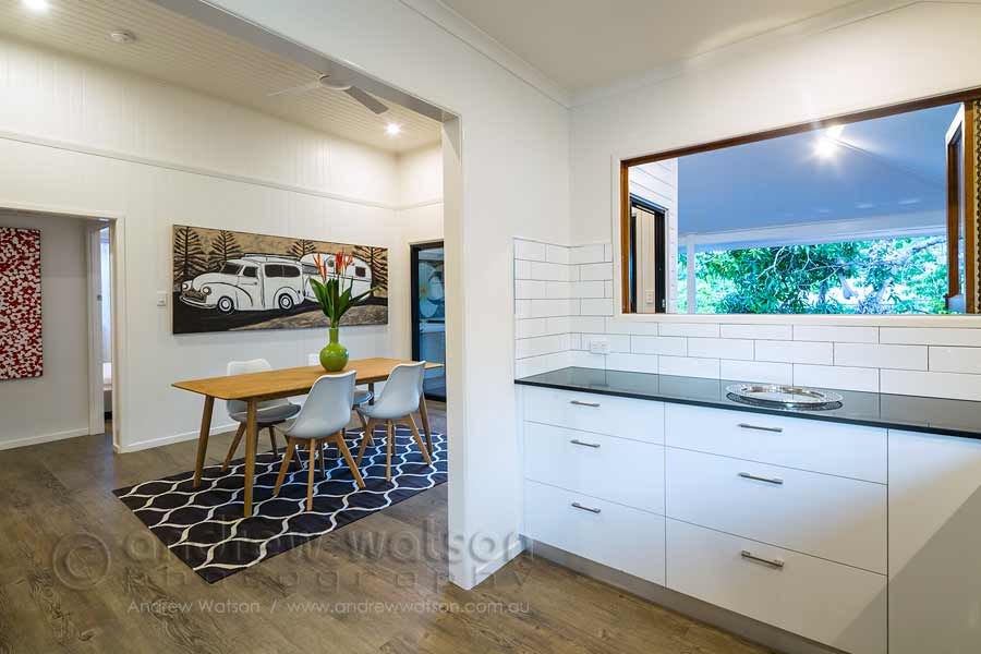 View through dining area to kitchen in the renovated Queenslander