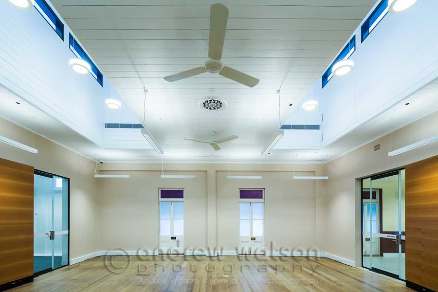 I was privileged to do the architectural photography for Total Project Group Architects, who through their innovative design, have ensured a beautiful building refurbishment. Original elements of the building have been preserved and protected, including the original timber flooring and verandah, whilst the facades of the different era buildings (which make up the SOA property) have been restored to their original roots – from early 20th-century design to Art Deco style.