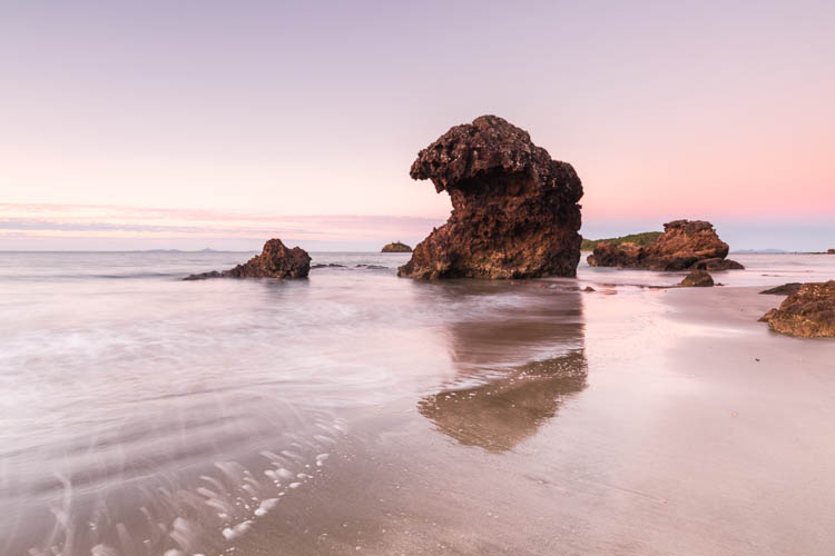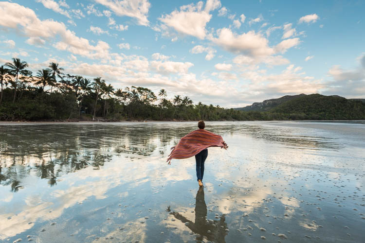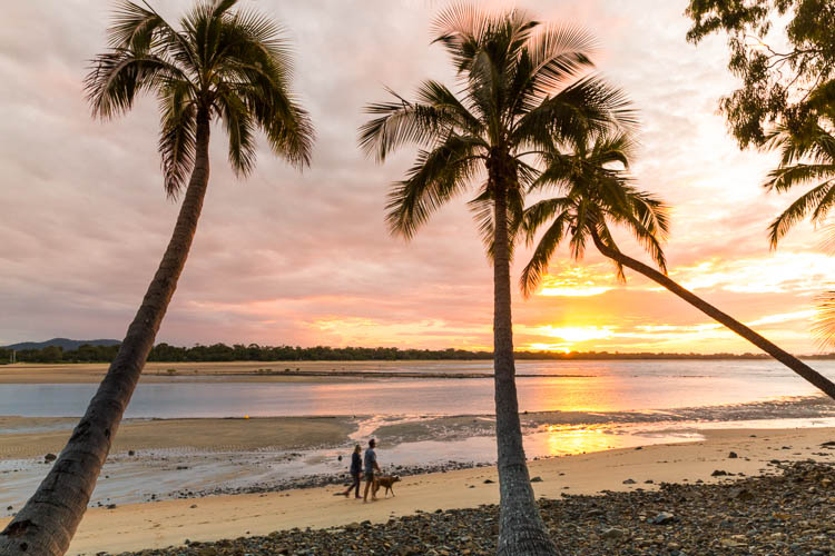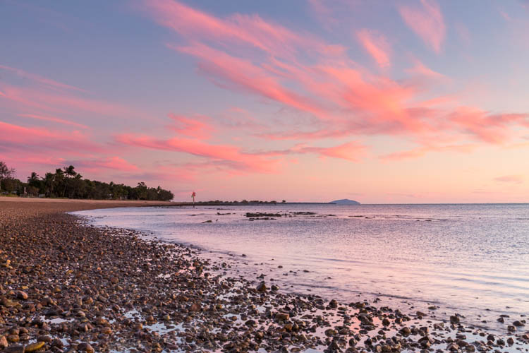 Sunrise was just as stunning at Clairview – the sky lighting up in wispy, pastel shades over the sea. It seemed very fitting for our last day in the Mackay region. With the campervan squared away, we headed north again, pulling in at Shoal Point beach in Mackay. At this pretty spot, the sand stretches out like a coastal desert at low tide, with shimmering views out to nearby Green Island.