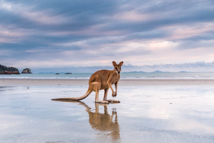 Twilight on the beach at Cape Hillsborough with a resident roo