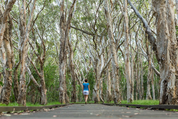Arriving in Mackay late afternoon, we checked out the Kommo Toera Trail (located in Slade Point Nature Reserve) – a meandering 1km trail through towering Melaleuca wetlands. Sunset Bay beach, in the northern suburb of Eimeo, sounded like the perfect spot to finish the day. It didn’t disappoint, with a golden glow bathing the tidal sand flats, framed by coconut palms.