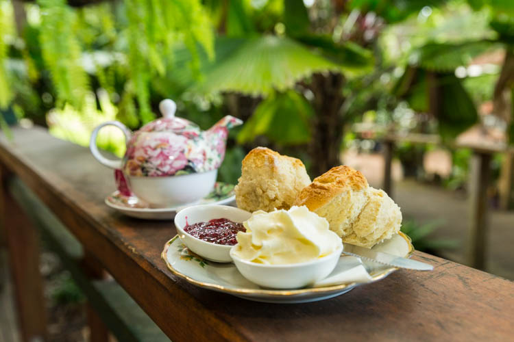 Leaving the beach behind, we stopped at The Old Station Teahouse. Set in a 110 year old former railway station, it’s the perfect spot for a Devonshire tea or light lunch. We opted for some wonderful homemade scones and jam amidst the lush garden surrounds.