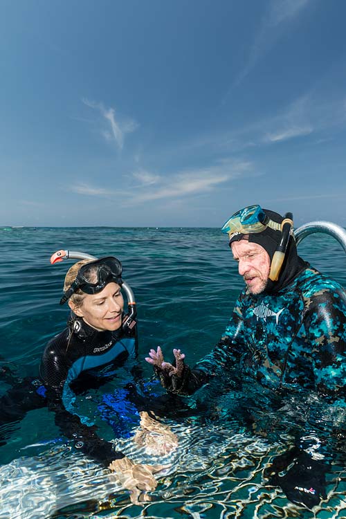 A Master Reef Guide pointing out coral species at Moore Reef