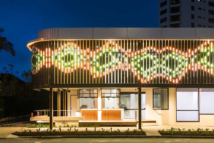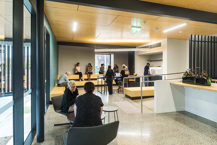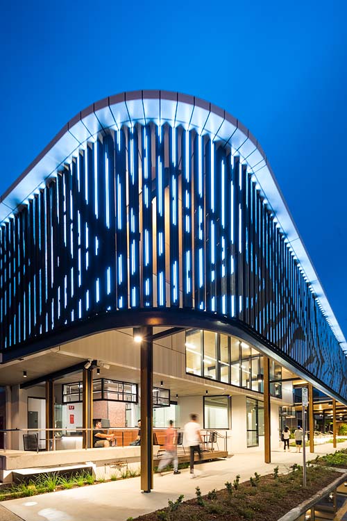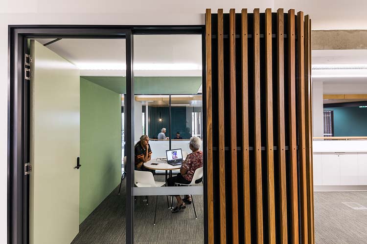 Working with the project designers, Total Project Architects, we did the architectural and interiors photography of the building, highlighting the unique features of the redevelopment. These included an innovative digital facade, bringing a dynamic way to display digital artworks. Notably, there is also a new foyer straddling public and private space, flexible office space areas, landscaped breakout spaces and a ‘Big Verandah’ extending over the footpath, beneath a double height colonnade. Utilising local timbers and indigenous plants, the centre has a reinvigorated feeling of warmth and space, meshing modern design with elements of ancient culture.