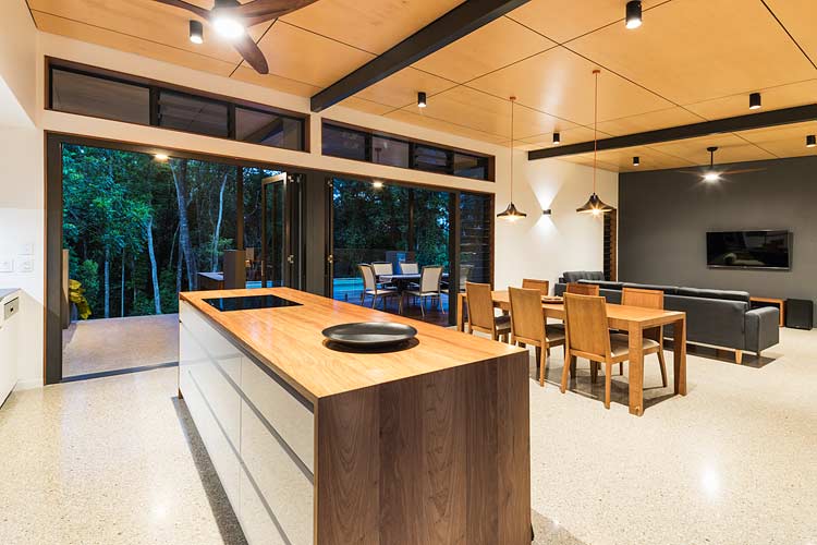 The open plan kitchen and living areas