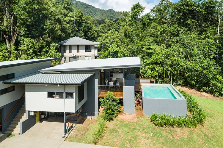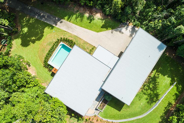 Birdseye view of property surrounded by rainforest