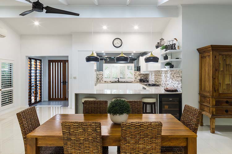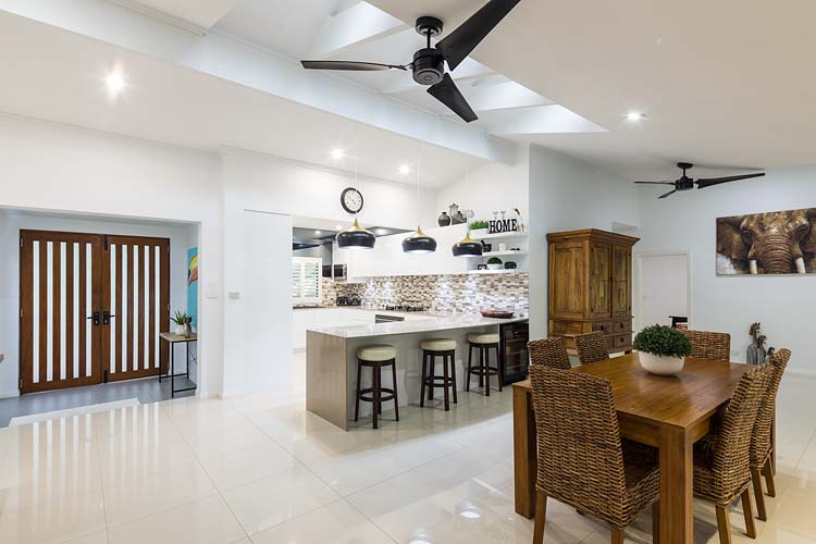 Some recent pics from a property photoshoot for Eastbuild, one of region’s leaders in custom-built homes. The property in the Cairns northern beaches suburb of Kewarra Beach, features a spacious outdoor entertainment area that flows through to the dining and kitchen areas. Backing onto a lush pandanus forest on one side, the property is a stone’s throw from the beach, as is evident in the drone photography.