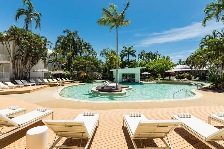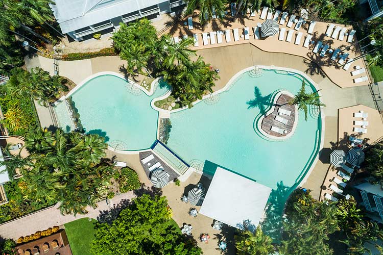 Aerial view of the main pool at Oaks Port Douglas Resort