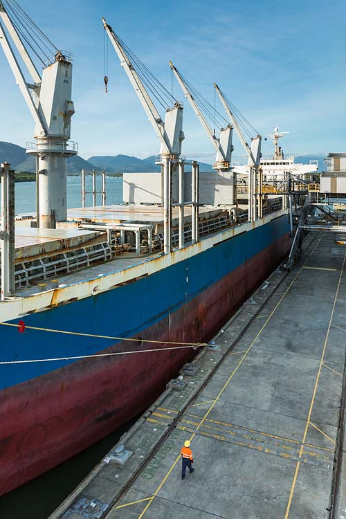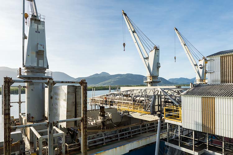 If you’re like me and have always wondered about what happens at those big green sheds on the Cairns waterfront, then here are some pics that will help answer that question. Last week I was at the Bulk Sugar Terminal to capture some industrial photography of the ship loading process for the site owners STL.