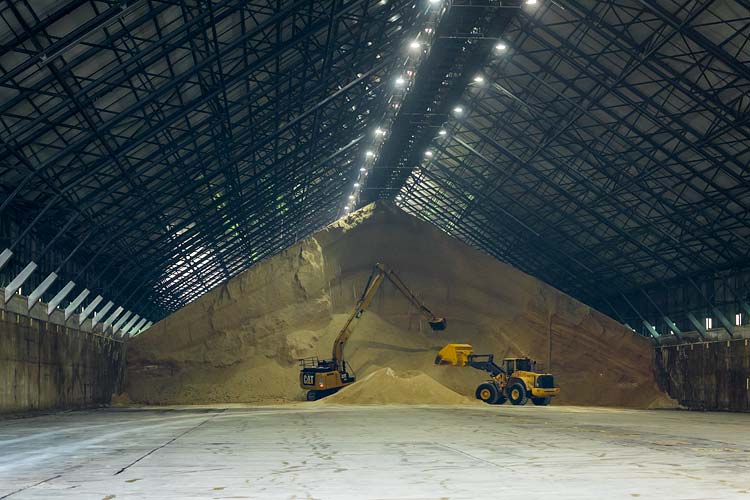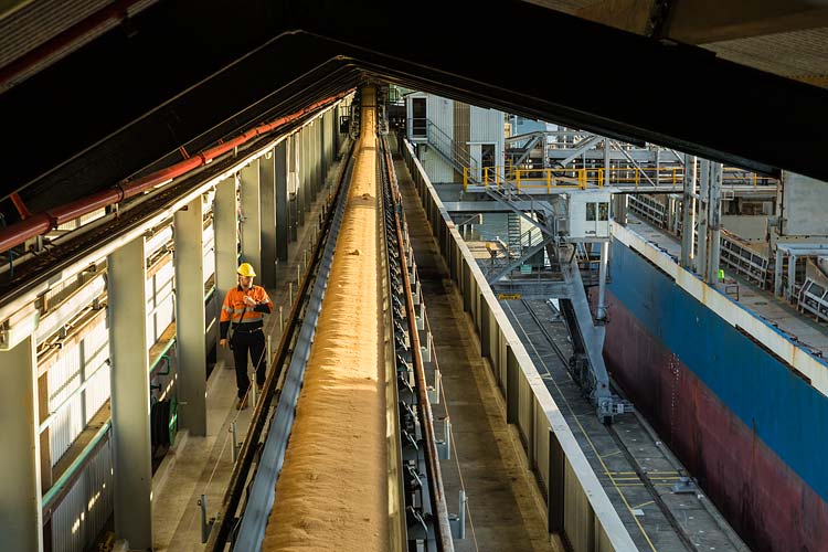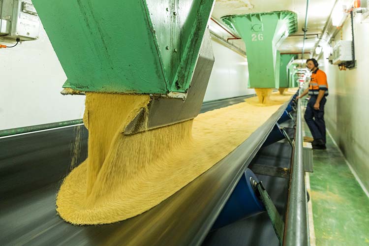 Bulk sugar is held in the massive storage sheds and when required for shipment, is fed through hoppers in the terminal shed floor to underground conveyor systems. These conveyors transport the sugar to the wharf where it is loaded into the ship’s hold.