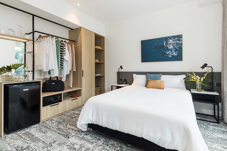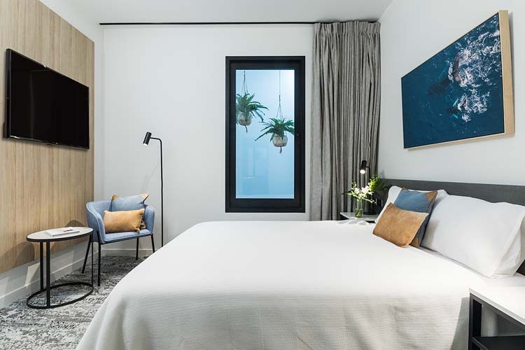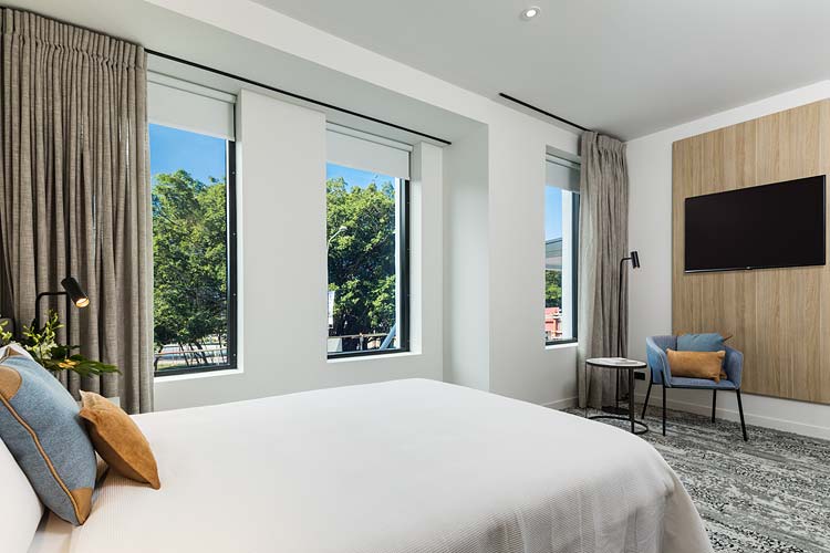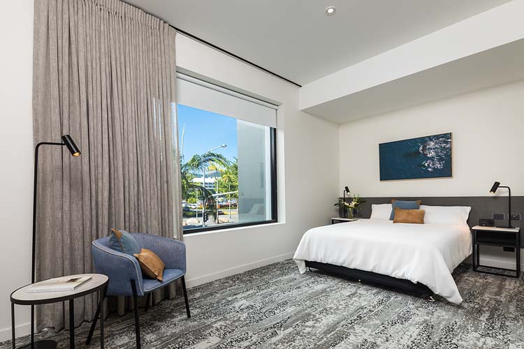 The Oaks Cairns Hotel is a new 76-room development overlooking the Esplanade Lagoon and in the heart of the CBD. Along with boutique style accommodation, the renovated building now features 5 storeys and will host a rooftop Oak and Vine restaurant. Although the hotel is not slated for opening until mid September, we were in there last week to do the hotel photography for some of the new completed rooms. Three room types were captured: executive ocean, deluxe and hotel internal, in addition to the lagoon views from the rooftop bar. Here’s a couple of pics from the shoot.