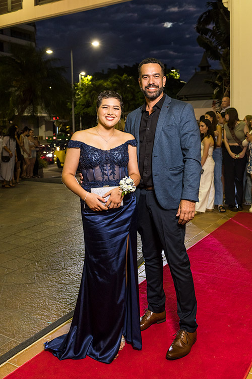 A couple arriving at the Pullman Cairns International for the Redlynch State College Senior Formal 2024