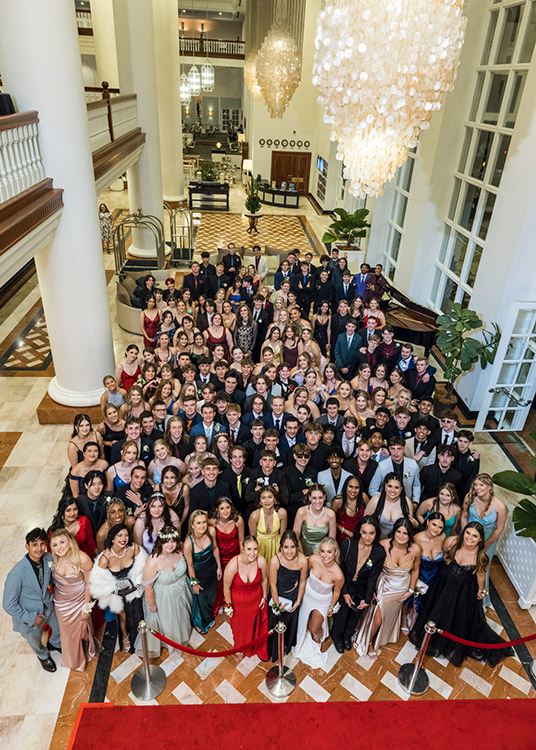 Senior Formal 2024 group photo in the Pullman Cairns International foyer